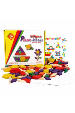 Ahşap 125 Parça Renkli Blok Tangram Puzzle Seti - Eğitici Ve Eğlenceli Oyun