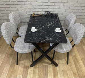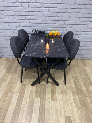 Masa Takımı Yemek Masası Mutfak Masası Balkon Masası - 60x120 Siyah Mermer 4 Arkalıklı Sandalye