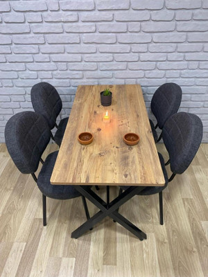 Masa Takımı Yemek Masası Mutfak Masası Balkon Masası-60x120Çam 4 Sandalye Koyugri