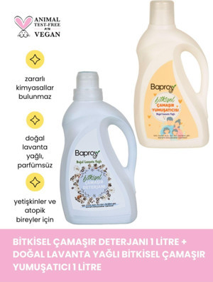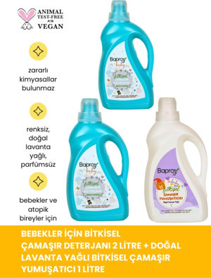 Bebekler Için Bitkisel Çamaşır Deterjanı 2 Lt+Bitkisel Çamaşır Yumuşatıcısı Doğal Lavanta Yağlı 1 Lt