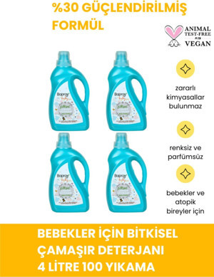 Bebekler Için Bitkisel Çamaşır Deterjanı Toplam 4 Litre %30 Güçlendirilmiş Formül