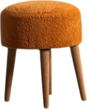 Luna Peluş Çok Amaçlı Gürgen Ahşap Ayaklı Pofidik Oval Puf