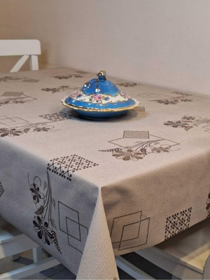 Başak Ev Tekstili Elyaflı Pvc Muşamba - Desenli Silinebilir Masa Örtüsü ( Gri-Bej ) - Image 1