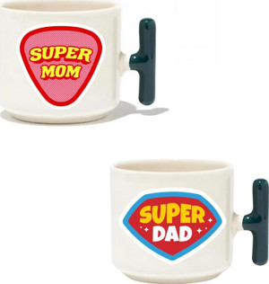 Super Mom Super Dad Latte Fincanı - Hediye Seramik Kupa