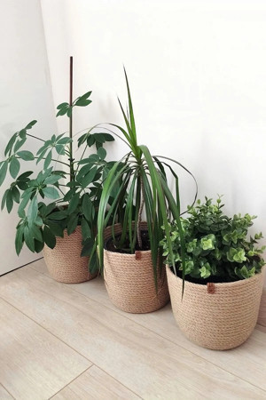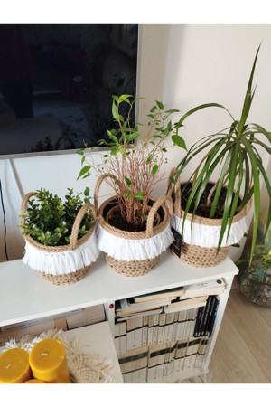 Jüt Hasır Örgü Dekoratif Üçlü Saksı Sepet