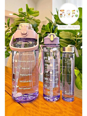 BAYSA Şeffaf Motivasyon Kokusuz Stickerlı Spor Suluk Matara Pipetli Taşınabilir Su Şişesi