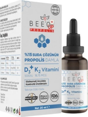 Bee'o Up %15 Suda Çözülür Propolis Damla D3+K2 Vitamini İçeren Takviye Edici Gıda 20ml