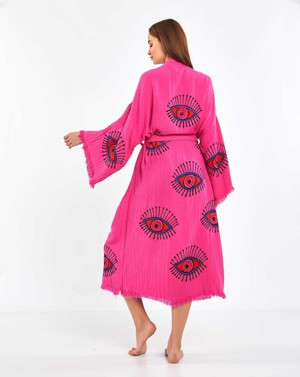 Müslin Kimono %100 Pamuklu Göz Desenli Bornoz Kaftan Sabahlık