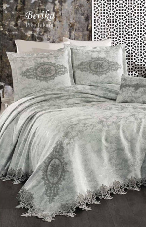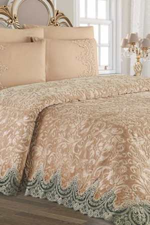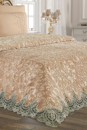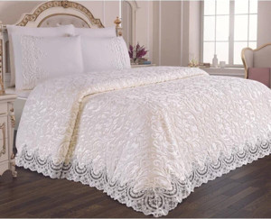 Krem Çift Kişilik Fransız Güpürlü Çeyizlik Battaniye Takımı