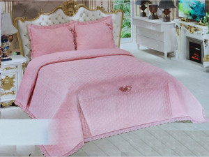 Home Pembe Çift Kişilik Abiye Yatak Örtüsü Güpürlü Dantelli 250*260Cm