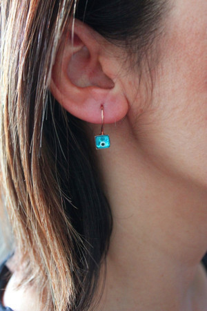 Turkuaz Nazar Boncuklu Kare Telli Roz Gümüş Küpe (Tgp0206)