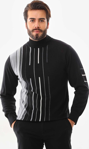 Erkek Yarım Balıkçı Yaka Çizgili Kazak 42363 Siyah