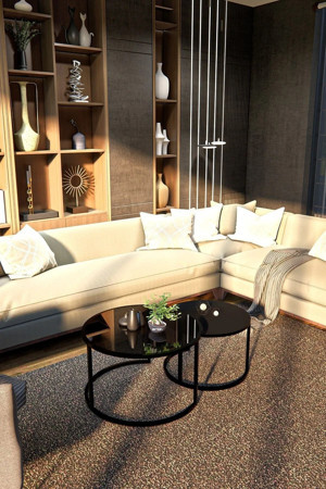 Monza İkili Sehpa Füme Cam / Siyah Mdf