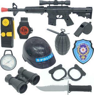 Polis Seti Kasklı Tüfek Tabanca 10 Parça Ekipman