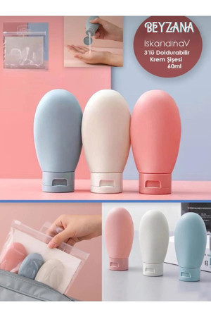 Iskandinav Tarz 3'Lü Doldurulabilir Çantalı Seyahat Tipi Şişe Seti | Boş Krem Şişesi 60Ml