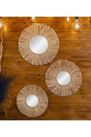 Bohem Handmade 3'Lü Rafya Ayna Seti 50-45-40 Cm B001