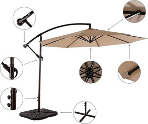 3 Mt Bej Renk Bahçe Teras Şemsiyesi Suya Dayanıklı 50 Faktöriyel Güneş Korumalı 8 Telli Aş01