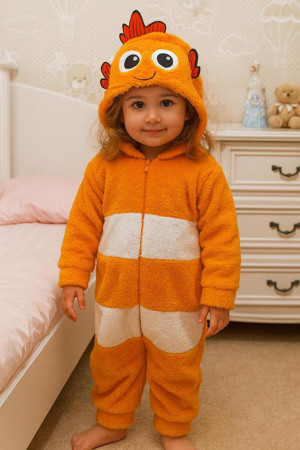 Welsoft Peluş Balık Nakışlı Kız Erkek Unisex Çocuk Uyku Tulumu , Balık Kostümü