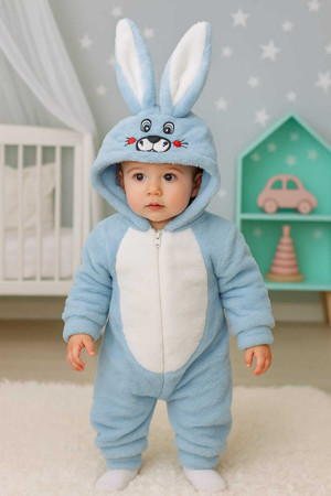 Erkek Çocuk Welsoft Peluş Mavi Tavşan Kulaklı Kostüm Kışlık Uyku Tulumu Bilgetrend9798
