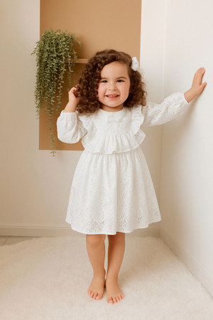Kız Bebek Çocuk, Şal Yaka Uzun Kol Beyaz Dantel Elbise, Doğum Günü, Düğün, Bayramlık, Parti Elbisesi
