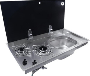 BIO Cam Kapaklı Çift Gözlü Ocak ve Evye Seti FSM3455