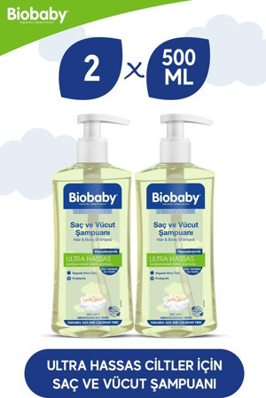 BioBaby Ultra Hassas Saç Ve Vücut Şampuanı 500 Ml Prebiyotik Allman Papatyası - Organik Içerik 2 Li Set