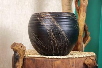 Ev Dekorasyon Aksesuar Siyah Granit Toprak Saksı Saksılık Salon Çiçeklik İkili Set Ayaksız - 4 Ayaklı- 19