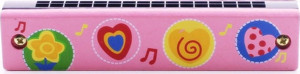 1 Adet Ahşap Mızıka 16 Delikli Çift Sıralı Pembe Desenli Çocuk Mızıka