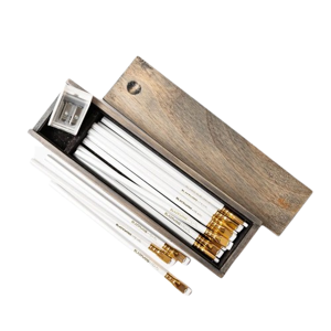 Rustic Çam Ağacından Hediye Kutusu & Pearl 12 Kalem & Kalemtraş Seti