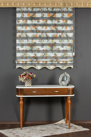Yaprak Baskılı Desenli Etekli Stor Zebra Perde