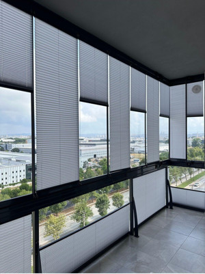 Gri Plise Katlanır Cam Balkon Perdesi, Ofis Perdesi, Mutfak Perdesi, Salon Perdesi