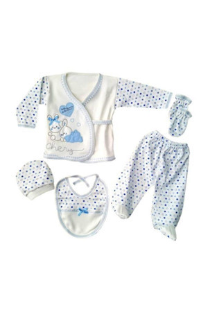 Tavşanlı 5 Parça Bebek Hastane Çıkışı Zıbın Seti Mavi