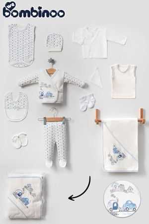 Bebe Arabalı Trenli 11 Parca Hastane Cıkışı Yeni Doğan Zıbın Set Mavi