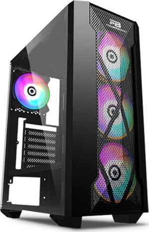 POWERBOOST VK-W001B, Tempered Glass, ARGB, USB 3.0, MidTower, ATX, Siyah, Mesh Panel, GAMING KASA (PSU YOK)