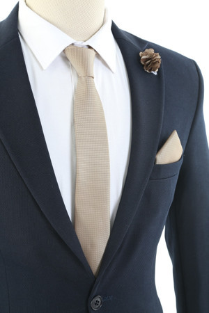 Bej Kravat Mendil Yaka Çiçeği Set