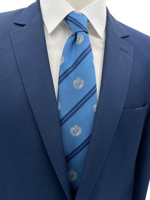 8 Cm Mavi Lacivert Çizgili Arma Desenli Kravat