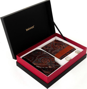 Kiremit Şal Desen Kravat Mendil Kol Düğmesi Hediyelik Set