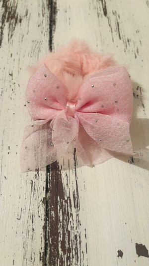 Kadın Açık Pembe Peluş Lastik Toka Tül Taşlı Fiyonk Toka Anne-Kız Sevgililer Günü Hediyesi