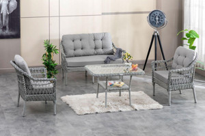 Rattani Milas 2'Li Bahçe Ve Balkon Takımı Açık Gri 2+1+1 Masalı