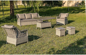 Rattani Datça Rattan Bahçe Mobilyası 3+1+1 Açık Gri/Masalı