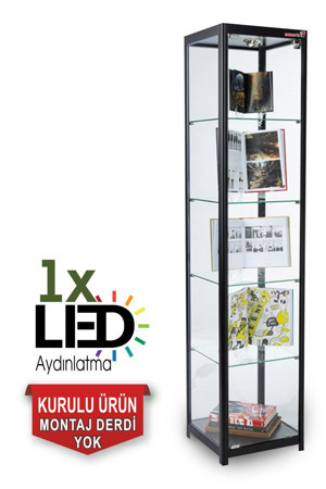 Camlı Vitrin - Camlı Dolap - Camlı Koleksiyon Vitrini - Cam Raf - Kurulu Ürün 180X40X40