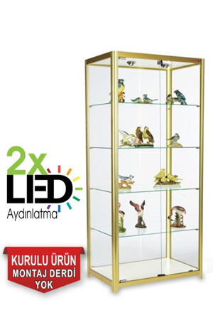 Camlı Vitrin - Camlı Dolap - Camlı Koleksiyon Vitrini - Cam Raf - Kurulu Ürün 200X80X40