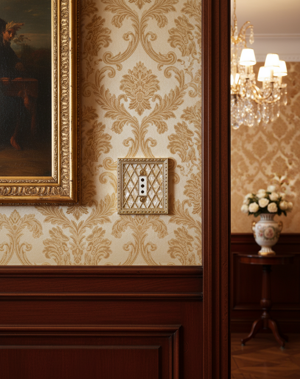 Bufer Sultan 1980’ler Antika Komitatör - Retro Sıva Altı İkili Lamba Anahtarı - Victorian Stil Altın Varaklı Dekoratif Elektrik Donanımı