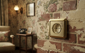 Bufer Sultan 1980’ler Vintage Topraksız Priz - Antika Sıva Altı Düz Priz - Victorian Stil Altın Varaklı Retro Elektrik Aksesuarı