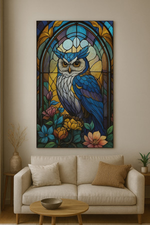 BLT DİZAYN Baykuş Vitray Desenli Cam Tablo – Bilgelik ve Renklerin Büyüleyici Uyumu