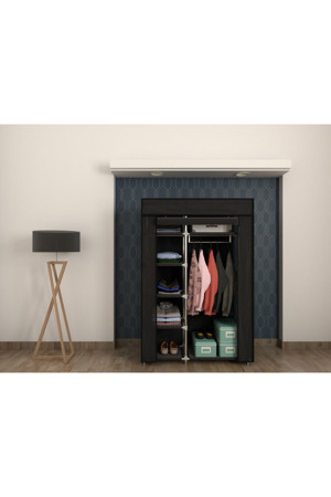 Plastik Profilli Siyah Tek Yandan Raflı Bez Dolap Gardırop