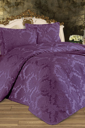 Busem Şönil Jakarlı Çift Kişilik Yatak Örtüsü - Mürdüm