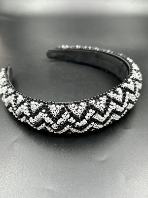 El İşlemeli Siyah Beya Renk Boncuk Parlak İşleme Abiye Nişan Davet Kadın Saç Tacı