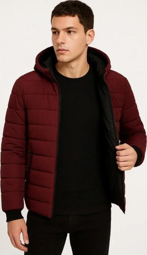 Erkek Şişme Kapüşonlu Fermuarlı Mont Su Itici Kapitone Astarlı Kumaş Cepli Kışlık Rahat Kalıp