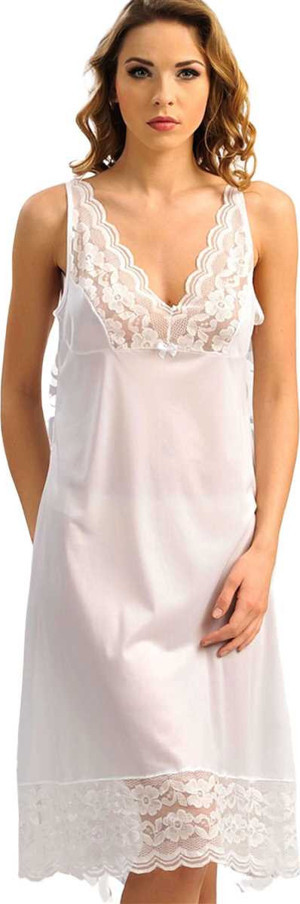 Kadın Beyaz Özel Bölgesi Açık Dantelli Gecelik